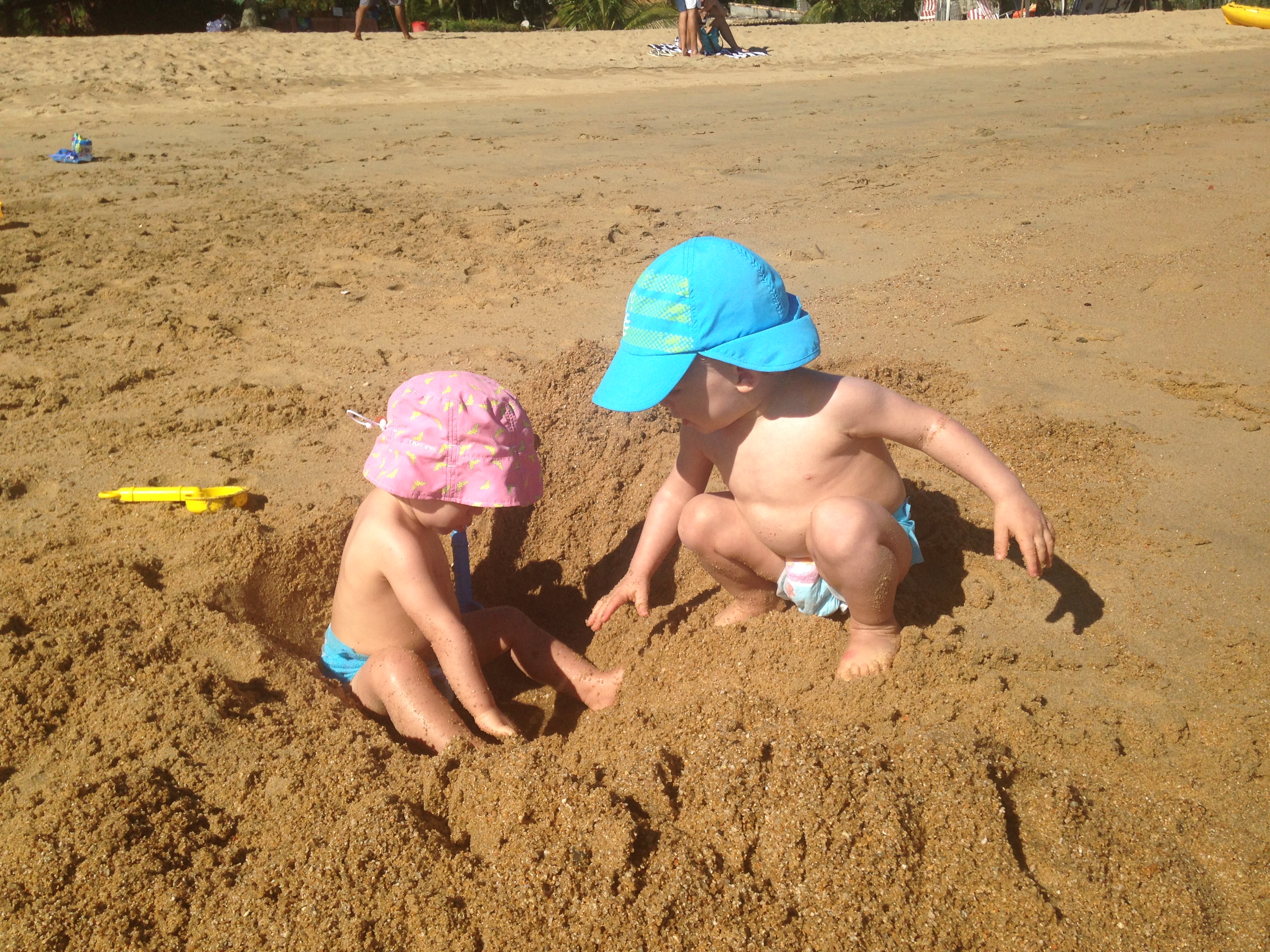 Leve fraldas para piscina e boias. Para os bebês que ainda não usam as de braço, existem as “boias fralda”, nas quais a criança fica sentada. Vale a pena também levar uma pequena piscina inflável. Ocupa pouco espaço e é útil para levar para a praia se você tiver um bebê pequeno, que ainda não vai aproveitar o mar, mas pode se divertir com um pouco de água na piscininha. Baldinho e pá também são hits para brincar na areia, as crianças amam, vale a pena separar um espaço na mala para eles. Não se esqueça do chapéu/boné, protetor solar e repelente (de acordo com a indicação do pediatra). Experimente diferentes modelos de chapéu para escolher um que fique firme na cabeça da criança. Uma boa pedida são os bonés com abas laterais, que protegem bem o rosto (como o azul da foto abaixo).