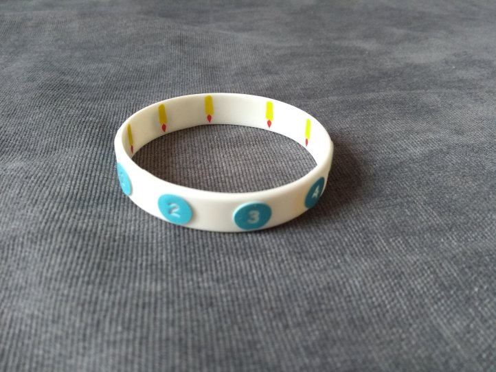 Dei os braceletes nas mãos dos meus filhos e eles se interessaram muito pela novidades. Perguntaram para que serviam, ficaram brincando de nomear as emoções e de contar os números.