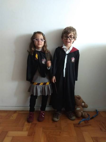 Neste ano meus filhos quiseram se fantasiar de Harry Potter e Hermione para a festinha de Halloween na escola.
