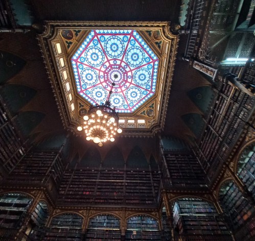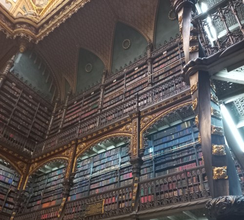 O Real Gabinete é uma biblioteca incrível, com um acervo de cerca de 300 mil títulos, que fica em um prédio muito lindo.